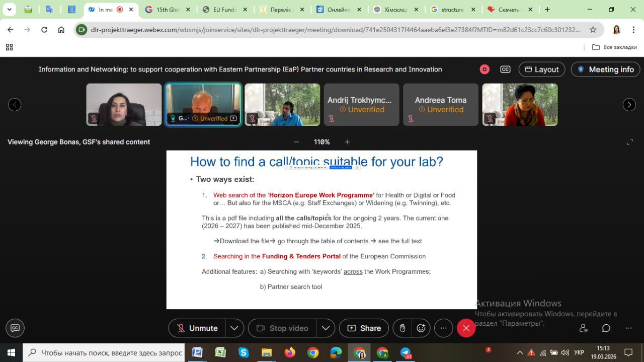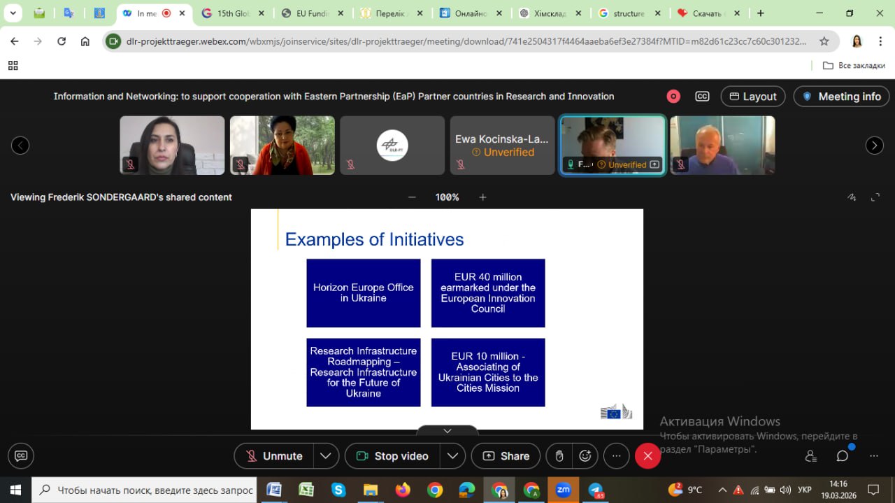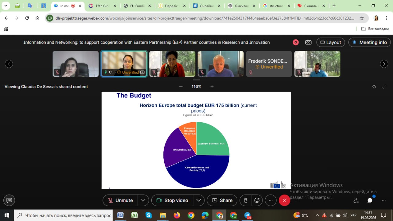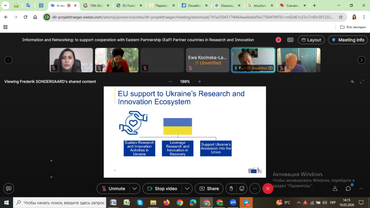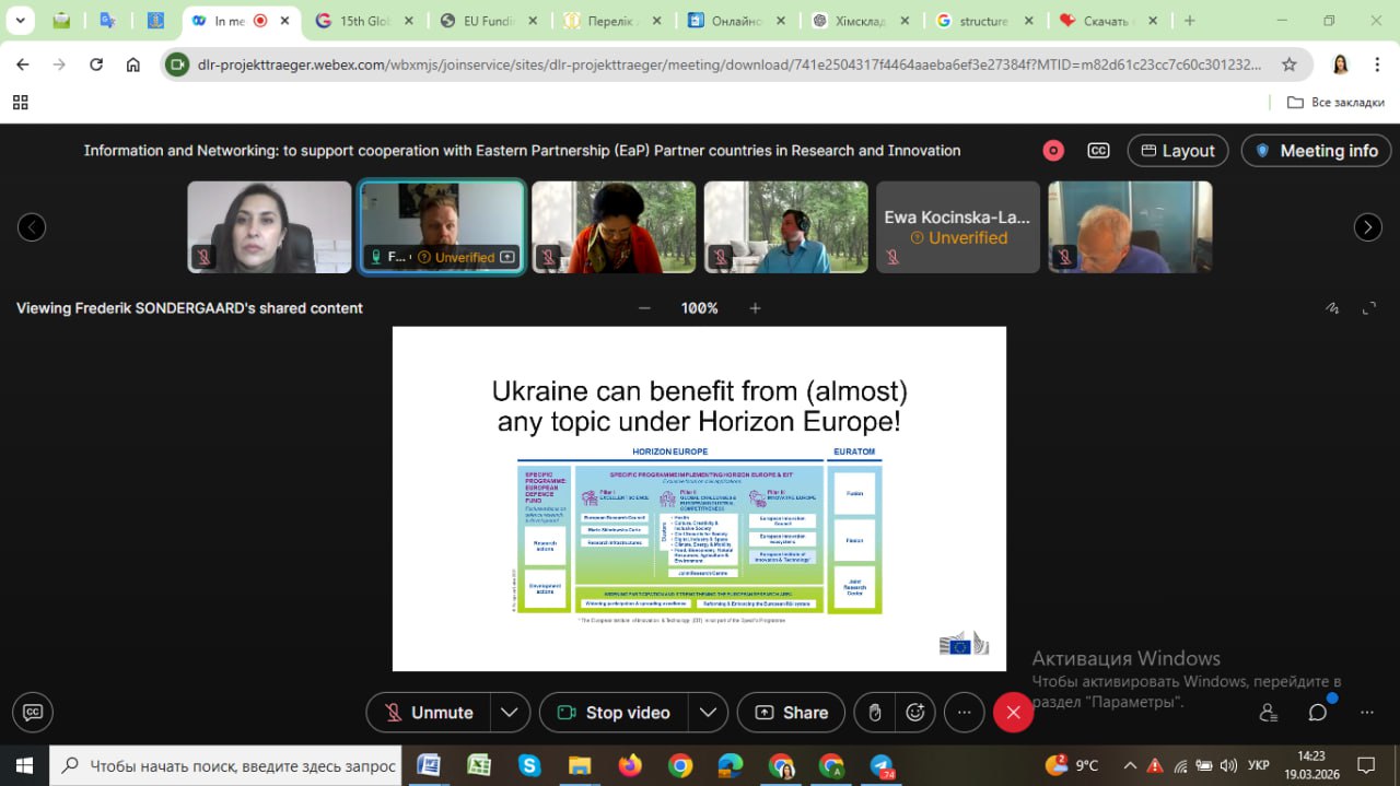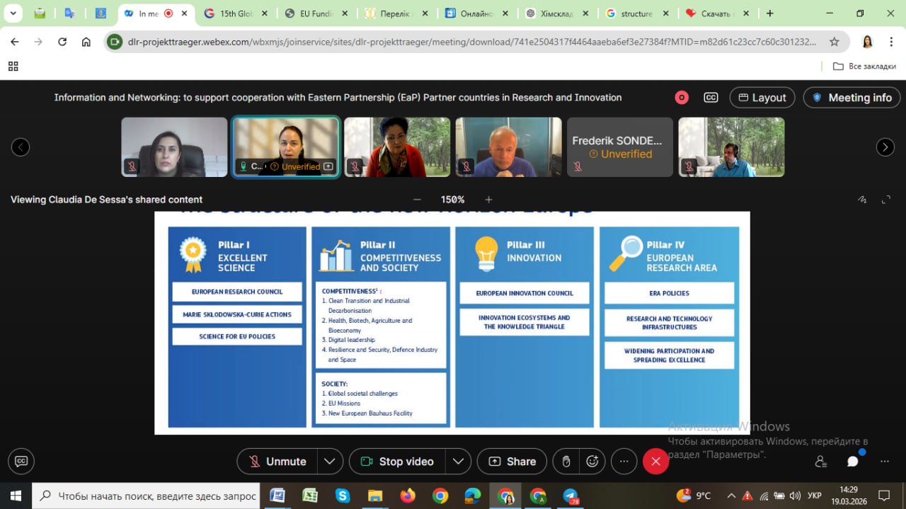 19 березня 2026 року відбувся інформаційно-мережевий вебінар, присвячений підтримці співпраці з країнами Східного партнерства (EaP) у сфері досліджень та інновацій. У заході прийняла участь проф. Капустян А.І. в якості слухача.